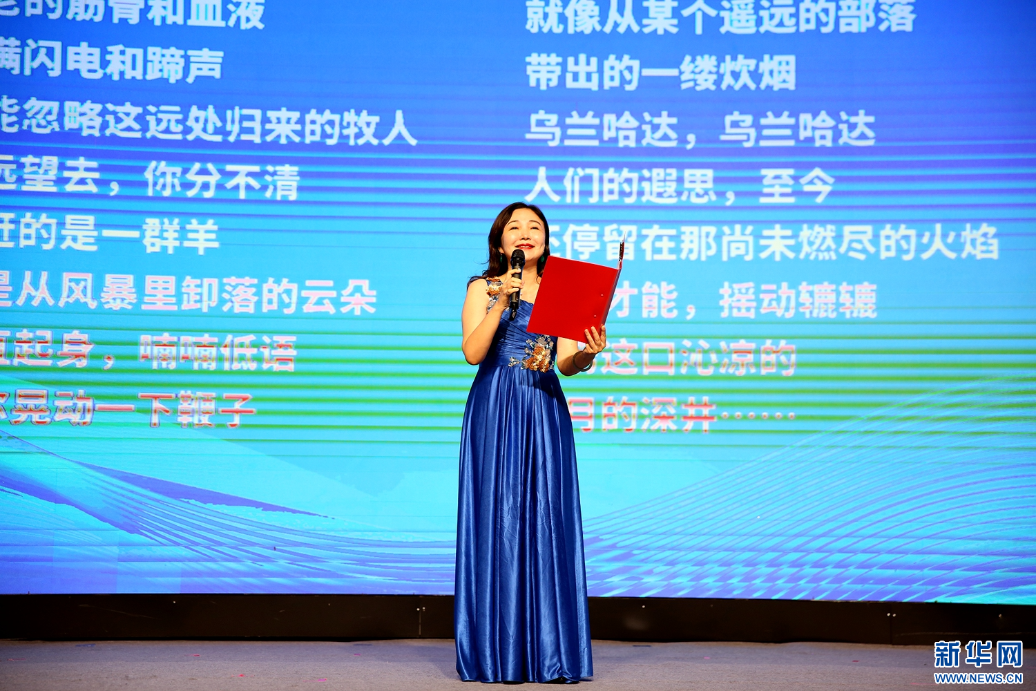 《欣约启明星》节目制作人、主持人温梦欣朗诵孟祥东先生创作的《乌兰察布赞歌》。新华网发(王俊平 摄)