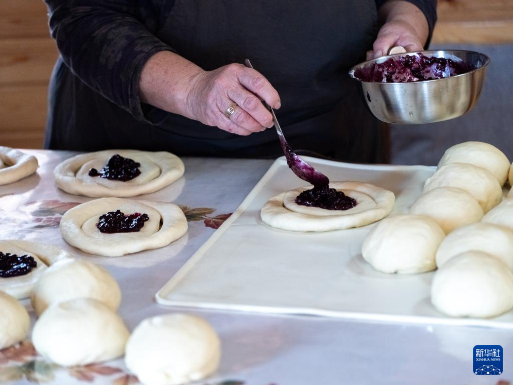9月26日,在内蒙古呼伦贝尔市额尔古纳市恩和俄罗斯族民族乡,孙运梅制作野生蓝莓馅的列巴。