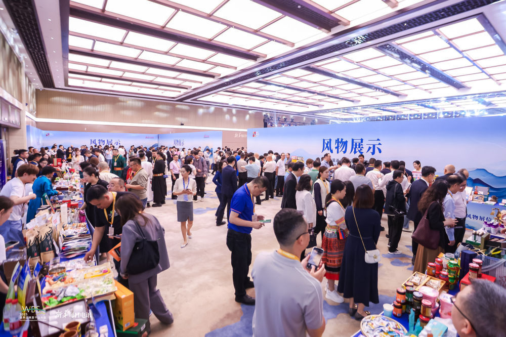 5月11日,在2025世界品牌莫干山大会“地方风物”展区,巴彦淖尔特色产品吸引众多参会者驻足品鉴。新华网发(侯乐 摄)