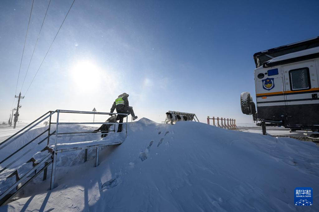 2025年1月8日,马背警队的民警陈子渊到检查站执勤。新华社记者 连振 摄