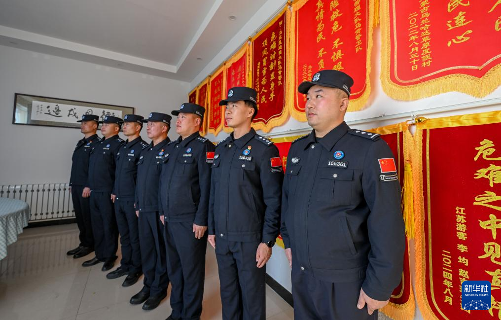 2025年1月8日,马背警队的民警合影。新华社记者 连振 摄