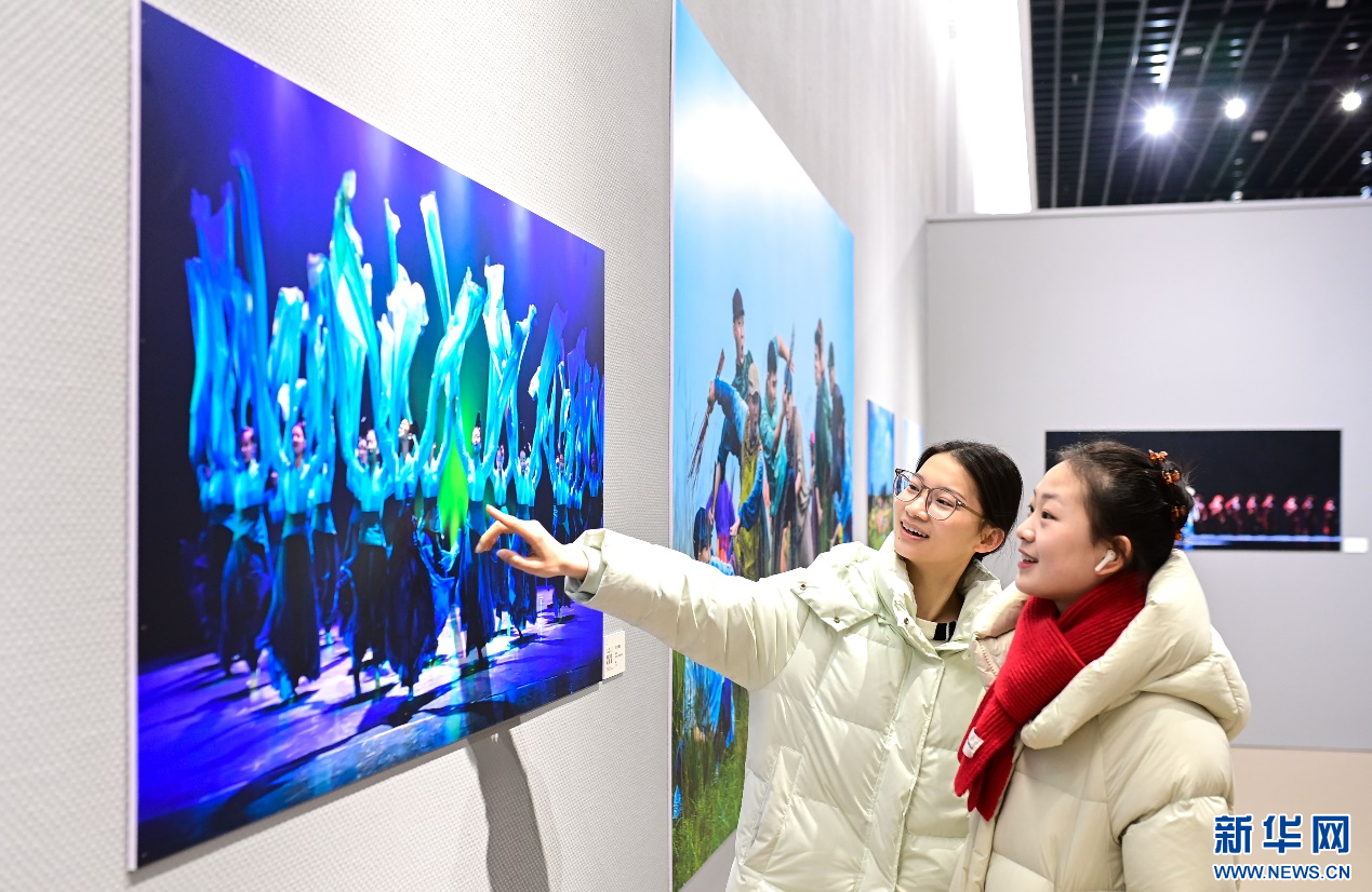 1月15日,观众在内蒙古舞蹈家协会舞蹈影像成果展上观赏作品。新华网发(王正 摄)