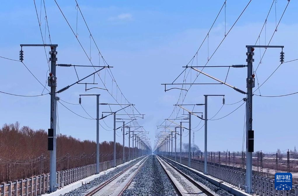 位于包头市的包银高铁接触网首件工程(5月9日摄)。