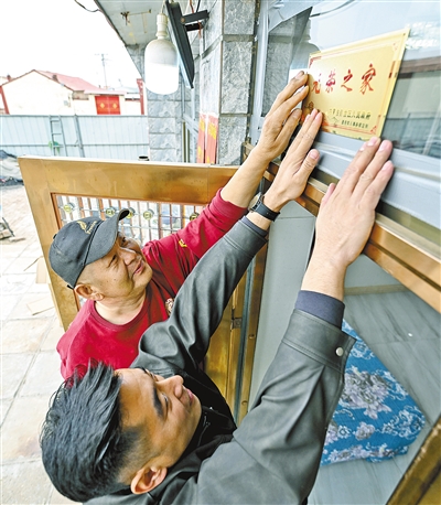 呼和浩特市土默特左旗退役军人事务局为郝永平家悬挂“光荣之家”牌匾。
