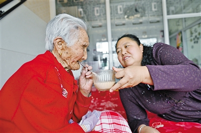 郝永平的大女儿时常带孩子看望太奶奶。(资料图)