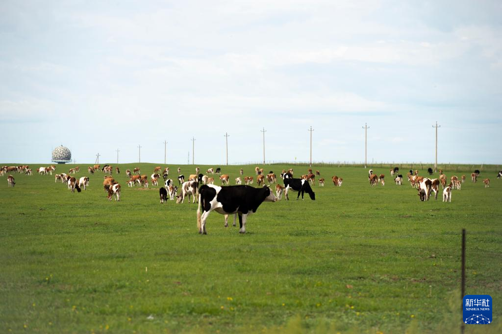 8月1日,牛群在蒙源农牧业集团有限公司承包的草场上吃草。