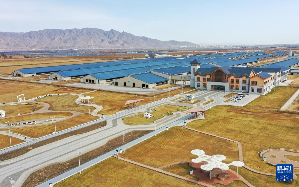 这是呼和浩特市土默特左旗伊利敕勒川生态智慧牧场(无人机照片)。新华社记者 连振 摄
