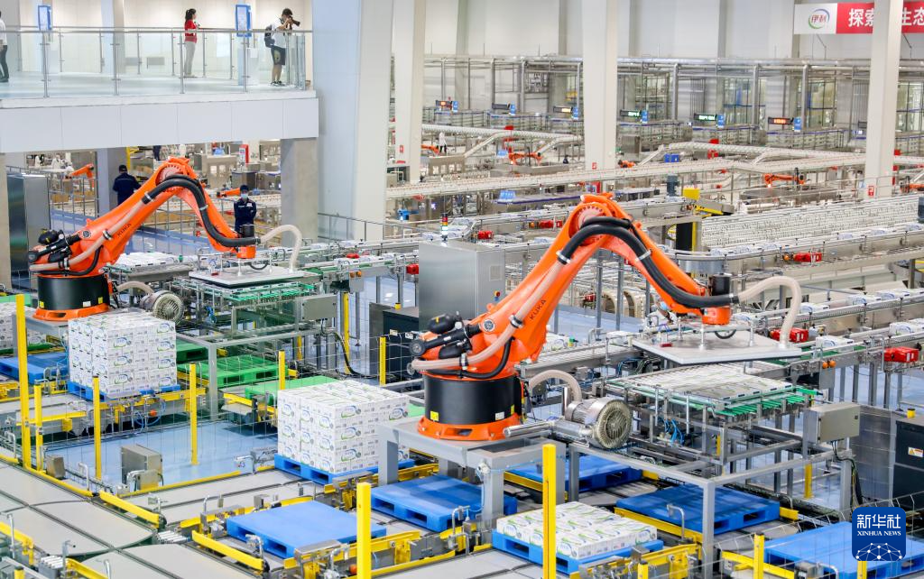 这是呼和浩特市伊利现代智慧健康谷中的液态奶生产线。(牛天甲 摄)
