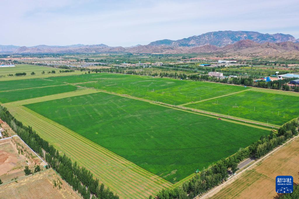 图为呼和浩特市土默特左旗国家现代农业示范区内的苜蓿种植基地(无人机照片)。新华社记者 刘磊 摄