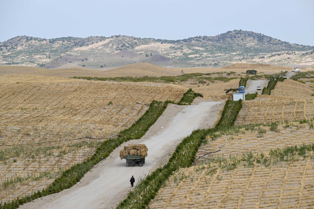 然而,烈日下,治沙工人的身影已遍布治理区各处,他们两人一组,配合默契,一人拉着稻草横放铺平,另一人则用工具按压培土。“草方格铺设速度很快,每人每天能铺三到四亩地。”敖汉旗林草局局长张旭东说,在500多人奋战下,仅一个月时间,这里便高质量地完成了4000亩流动沙地的治理任务。“草方格中间可以栽种苗木,固定住流动沙丘。再过七八年,眼前的沙地就会呈现疏林草原的景观。”