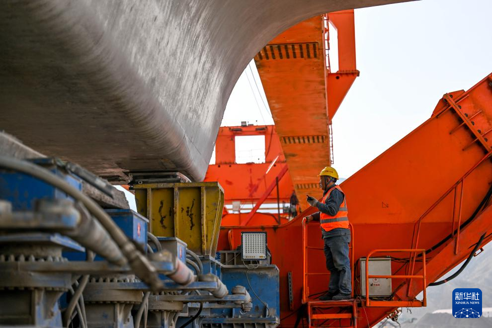 3月6日,工人在包银高铁河源村特大桥合龙施工现场作业。新华社记者 李志鹏 摄