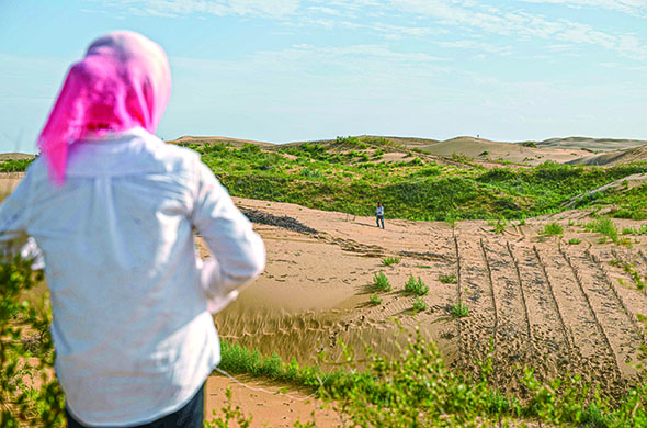 治沙战役开展得更加轰轰烈烈,早在上世纪五六十年代,一场全民参与的防风固沙战役就在鄂尔多斯大地打响。当地百姓几十年如一日,一到春天就开始设置沙障、种植树苗,涌现出殷玉珍、吴向东、曹扎娃等一大批治沙劳模。现在,沙漠大数据分析技术、种质资源技术、无人机飞播技术等现代治沙科技大大提高了生态治理水平,更进一步赋能绿色发展。