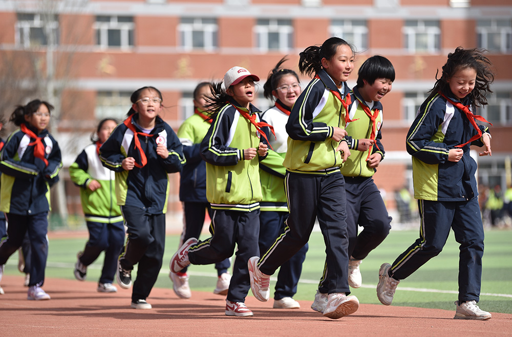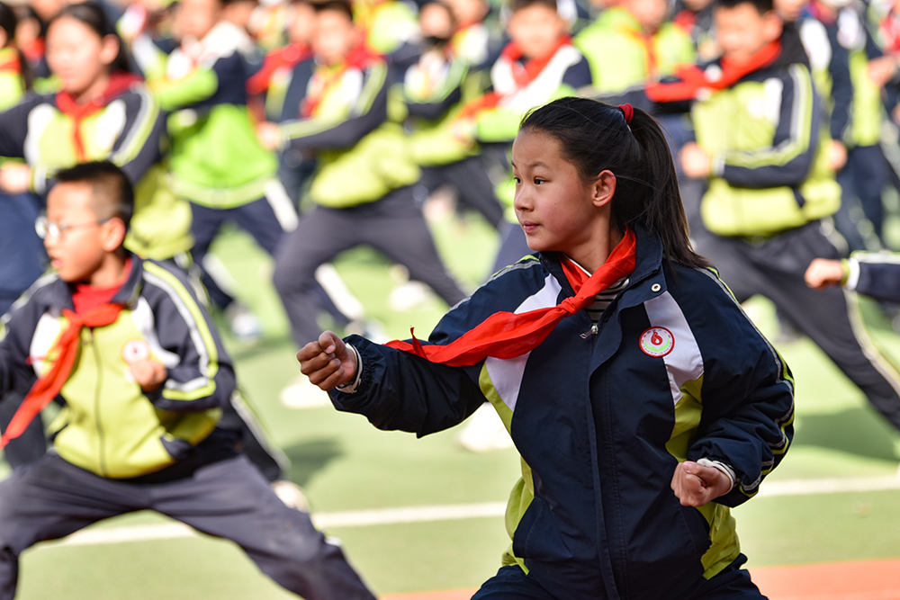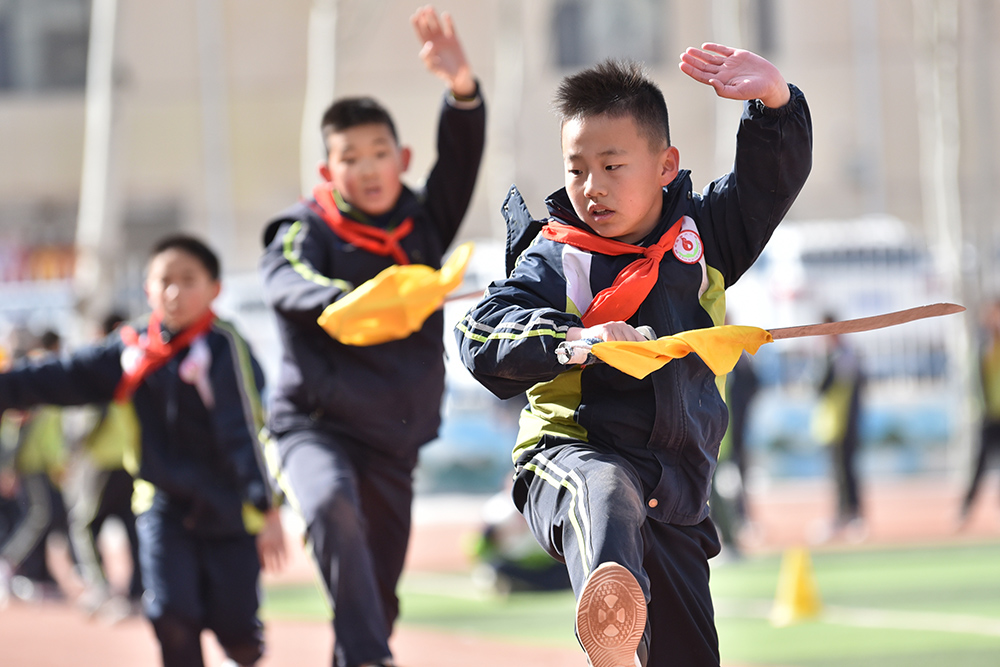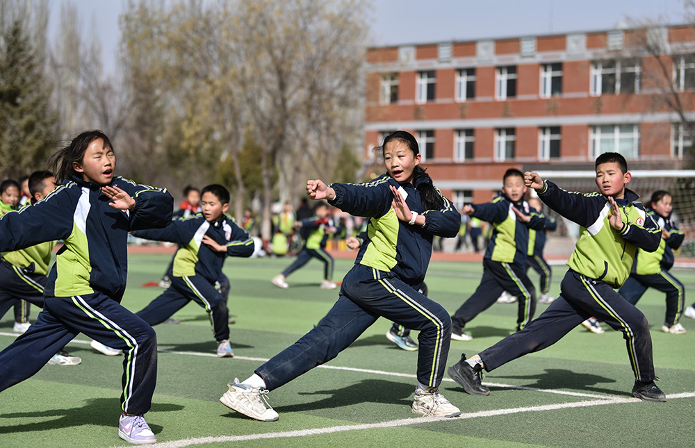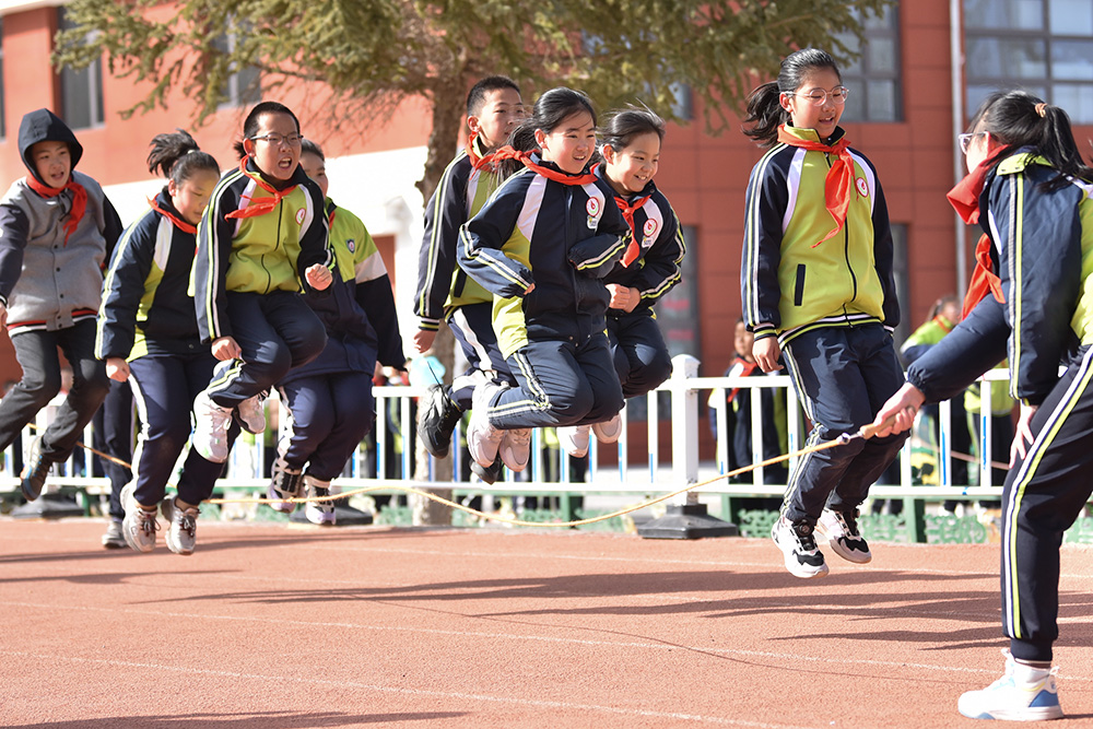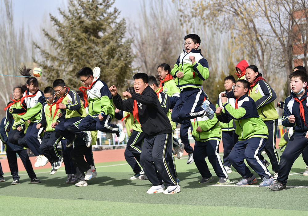 春季新学期伊始,内蒙古阿拉善左旗各中小学实施学生体质强健计划,优化课程设置,确保学生在校每天综合体育活动时间不低于2小时。阿拉善第六小学在保证体育课时基础上,将课间从10分钟延长至15分钟,上下午各安排一次30分钟的大课间,组织开展武术、足球、篮球、乒乓球、跳绳、体能训练等丰富多彩的体育活动,让学生充分享受运动带来的快乐,为学生健康成长、全面发展助力。(康文魁 摄影报道)