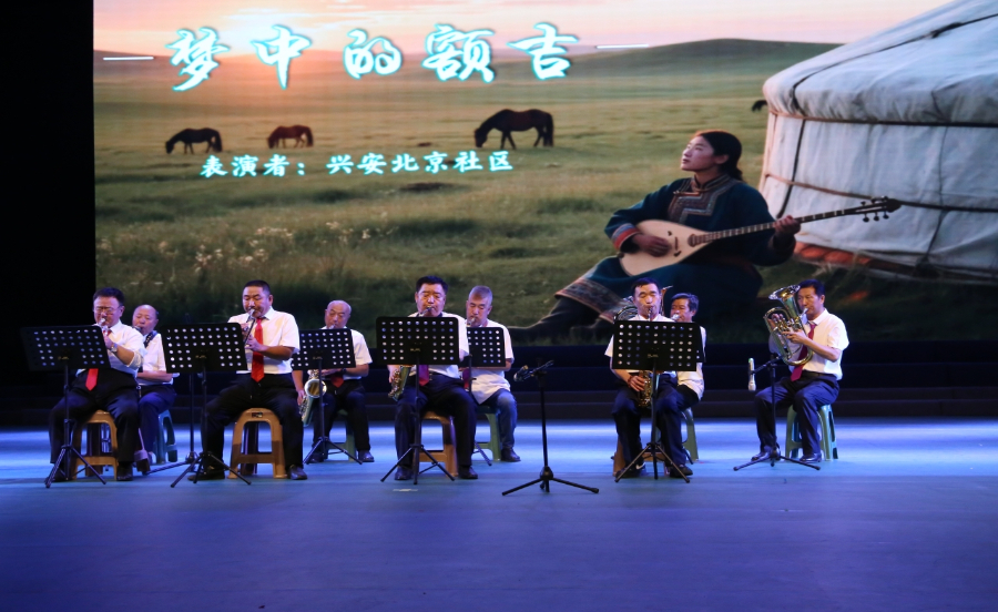 合唱《草原上升起不落的太阳》《壮美延安》歌声嘹亮、广场舞《宴歌》自由洒脱、川剧变脸《小脸谱大魔法》令人惊叹、北京首都军歌合唱艺术团演唱《红歌组曲》、四胡演奏《跨上骏马唱赞歌》奏响豪迈、静舞《国家》旋律优美、乐器合奏《梦中的额吉》《走向复兴》相映生辉。现场观众巴特尔说:“草原上的风能把歌声吹到北京,把我们的心意带给首都亲人。”