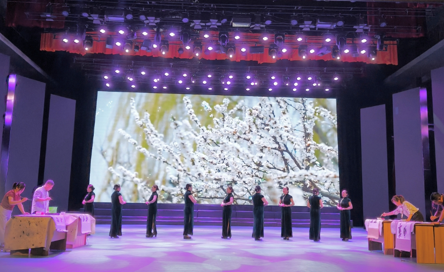 在《杏花落》的古典韵律中,同台的书法家在宣纸上写下“京蒙情深”。有观众说:“这些墨宝是京蒙两地千里路、云和月的见证。”