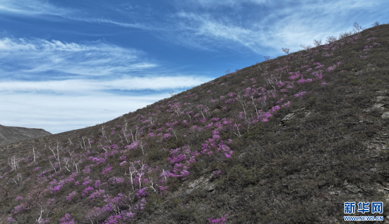 近日,内蒙古翁牛特旗的六万亩杜鹃竞相绽放,将这片土地装点得如梦如幻。