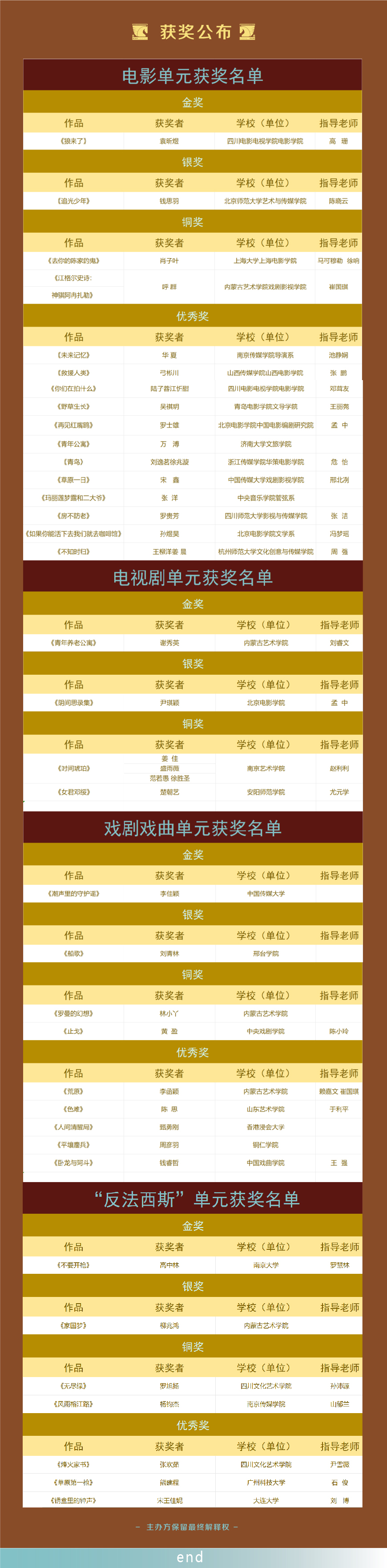本届大赛于今年5月启动作品征集,共收到有效投稿344部。赛事坚持类型多样、鼓励原创的原则,通过奖金激励与荣誉表彰相结合的方式,助力优秀创作者走向更广阔的专业平台。(艺莉)