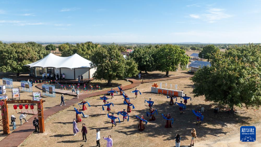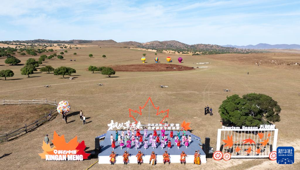 9月27日,演员在2025兴安盟五角枫文化旅游季启幕仪式上表演(无人机照片)。