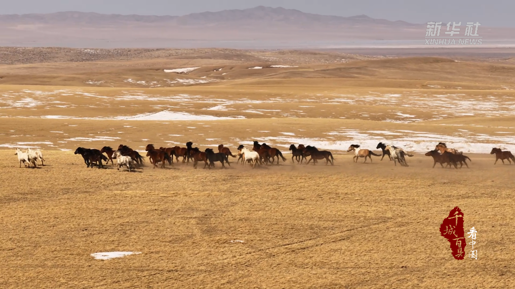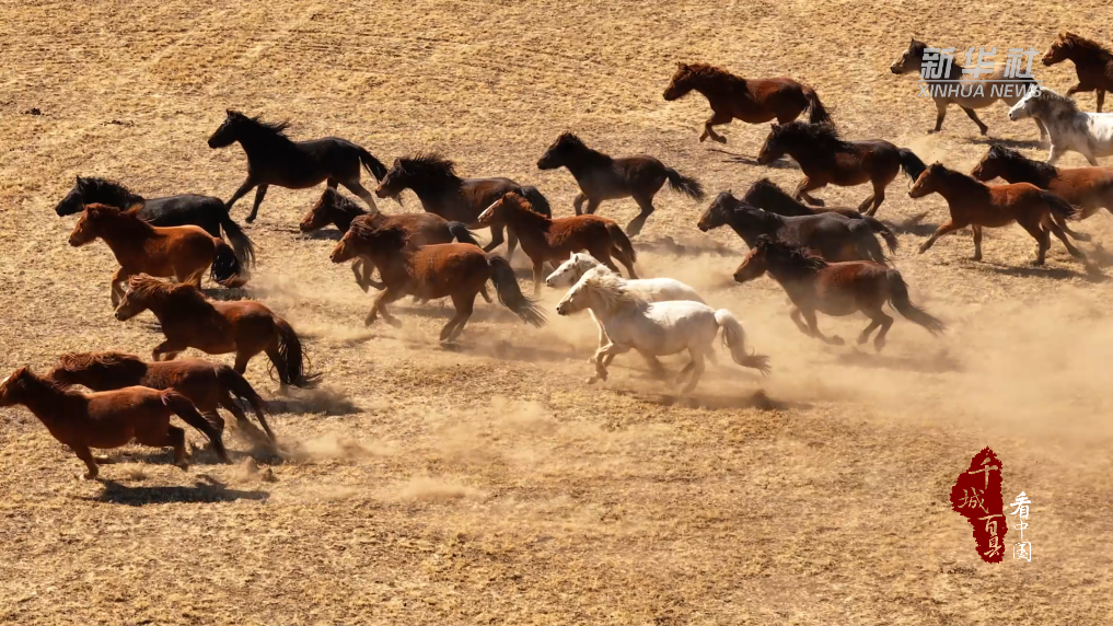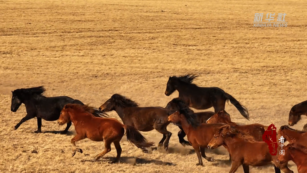 一群骏马自远方奔腾而来,马蹄踏草,发出清脆有力的声响,扬起的尘土于金色阳光中飞舞,仿若大地奏响乐章时跃动的音符,成为草原春天的“最强音”。