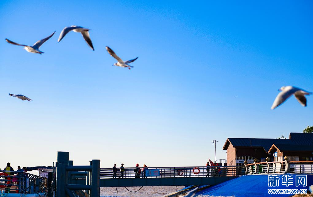 9月23日,游客在乌海湖码头游玩。(康文魁 摄)