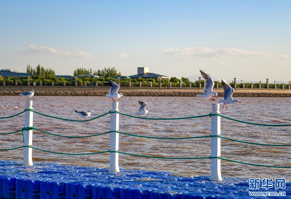 9月23日,几只红嘴鸥在乌海湖畔栖息。(康文魁 摄)