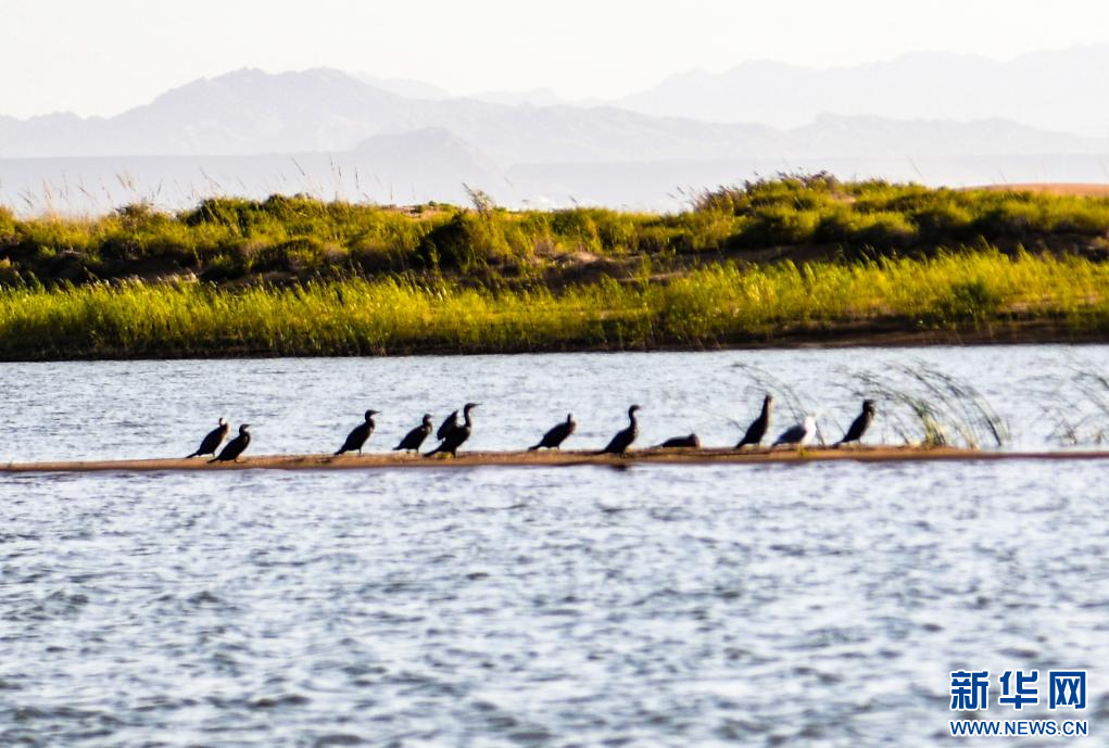 9月23日,几只鸬鹚在乌海湖中栖息。(康文魁 摄)