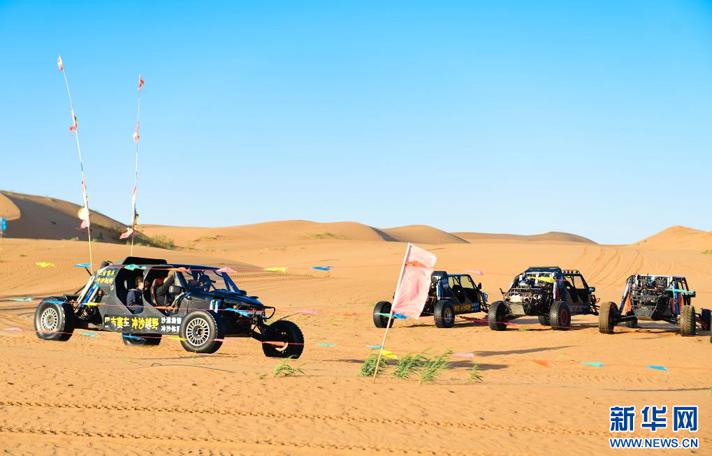 9月23日,游客在乌海湖沙漠中体验冲沙越野。(康文魁 摄)