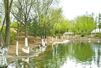 呼和浩特市大青山野生动物园内湿地区域成为众多水禽家园。