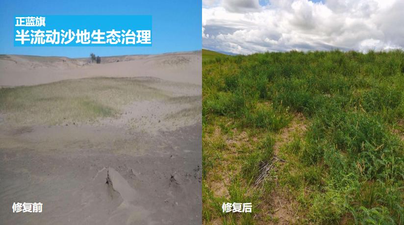 在正蓝旗半流动沙地治理中,应用“生态种子包”治理3年后,示范区植被高度、盖度、密度、产量较治理前显著提高,植被盖度达到45%—55%,牧草产量均达到75公斤以上,裸沙面积减少90%以上。(常青)