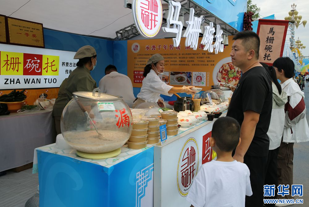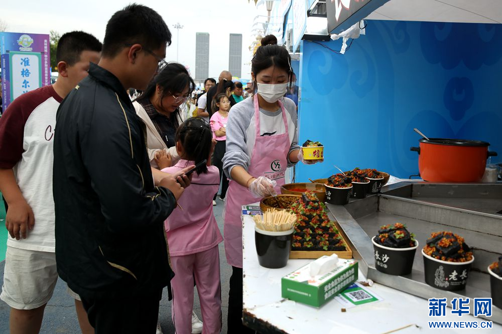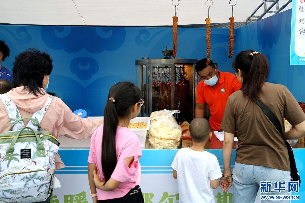 8月22日,在美味暖城·鄂尔多斯首届美食文化周活动现场,市民购买特色美食。新华网 石毅 摄