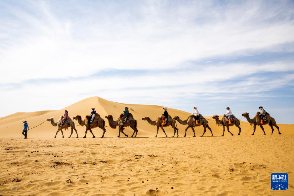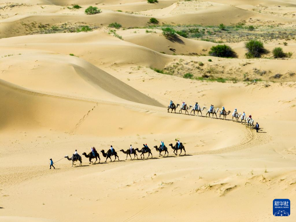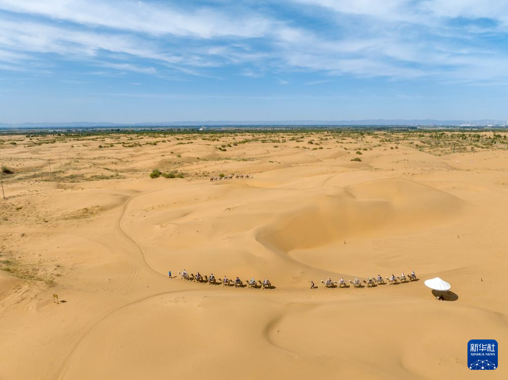 进入夏季,内蒙古自治区鄂尔多斯市达拉特旗境内的库布其沙漠游客日渐增多。人们在饱览沙漠独特美景的同时,也可体验穿沙索道、骑骆驼、高空沙漠索道、滑沙等沙漠特有的游乐项目。