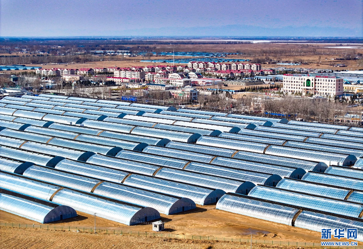 3月8日,鄂尔多斯市准格尔旗十二连城乡五家尧村温室大棚景色(无人机照片)。新华网发(王正 摄)