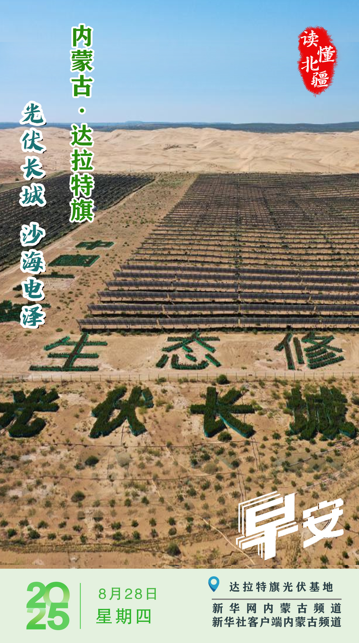 读懂北疆丨2025年8月28日 光伏长城 沙海电泽 内蒙古达拉特旗
