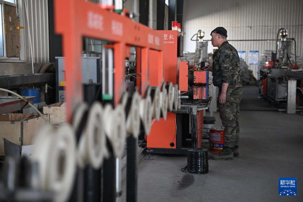 3月8日,工人在内蒙古兴安盟扎赉特旗内蒙古鑫嘉立铭新材料科技有限公司滴灌带生产车间作业。新华社记者 贝赫 摄