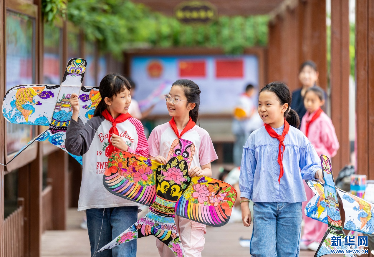 6月6日,呼和浩特市玉泉区五塔寺东街小学学生在“我们的节日·端午”主题活动上准备放飞刚刚绘制的纸鸢。新华网发(丁根厚 摄)