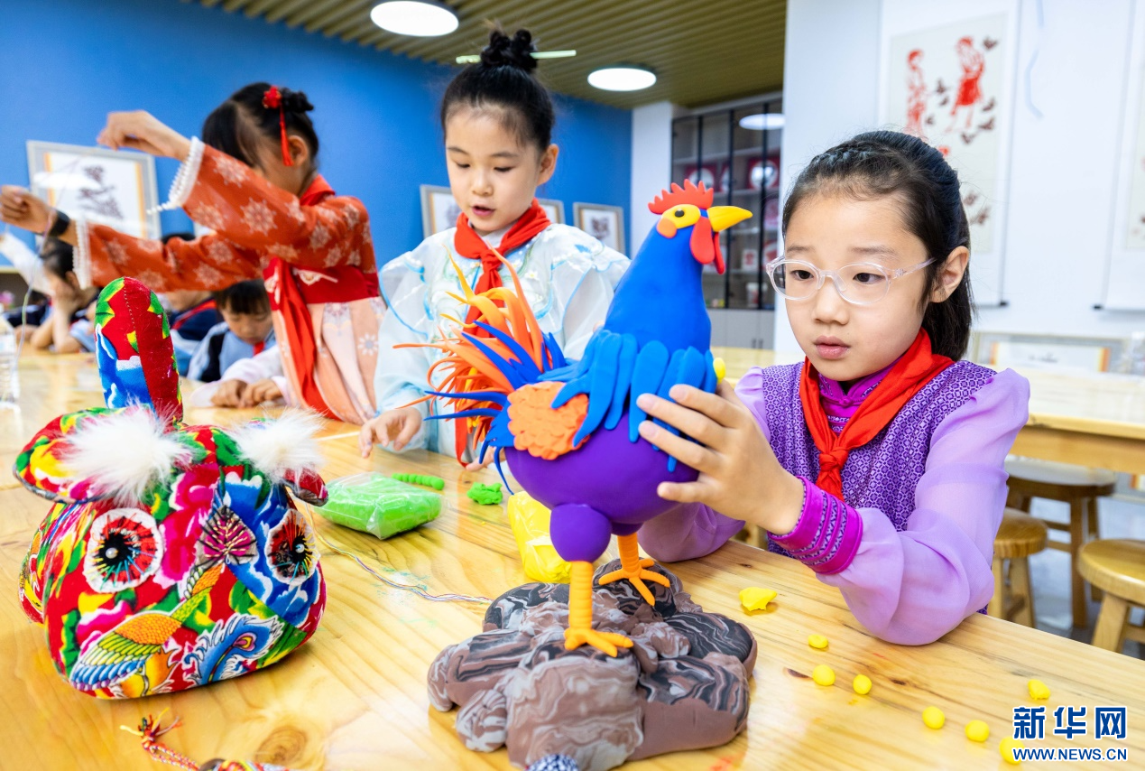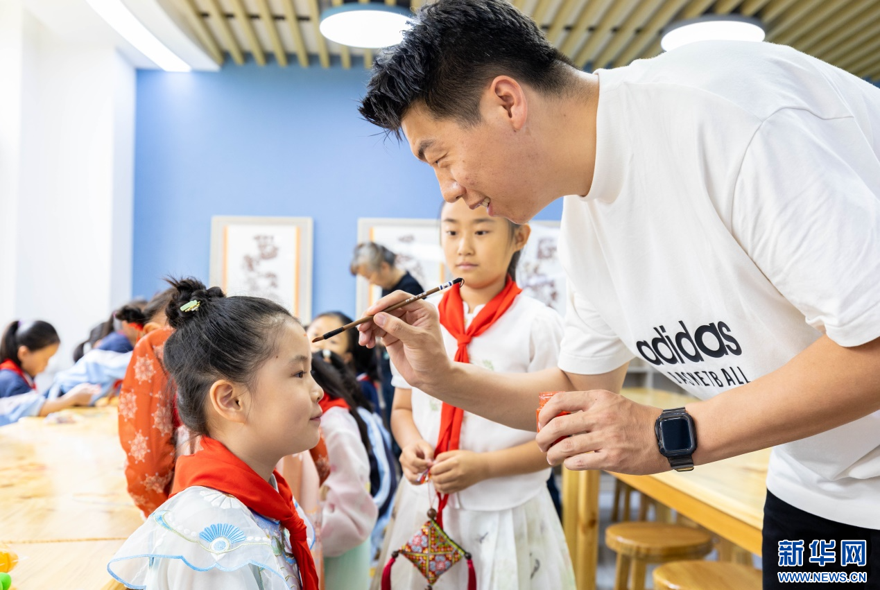 6月6日,呼和浩特市玉泉区南柴火市街小学学生在“我们的节日·端午”主题活动上绘制端午辟五毒雄鸡。新华网发(丁根厚 摄)
