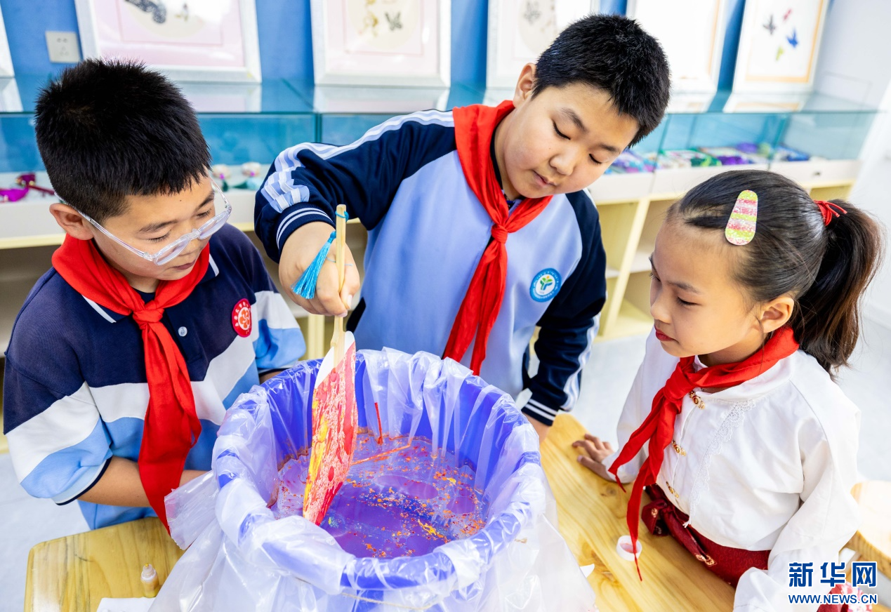 6月6日,呼和浩特市玉泉区南柴火市街小学学生在“我们的节日·端午”主题活动上制作漆扇。新华网发(丁根厚 摄)