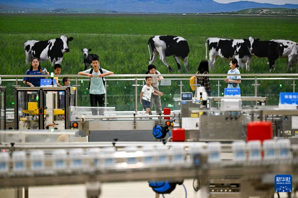 游客在呼和浩特市伊利现代智慧健康谷液态奶全球智造标杆基地参观(7月28日摄)。