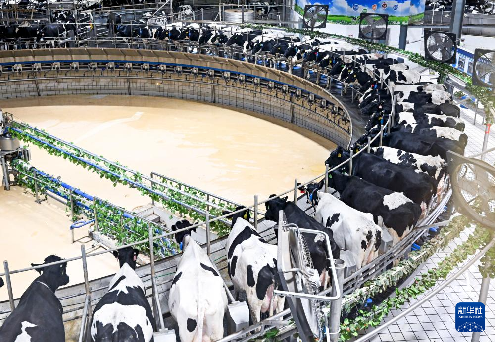 这是呼和浩特市伊利敕勒川生态智慧牧场挤奶车间(7月28日摄)。