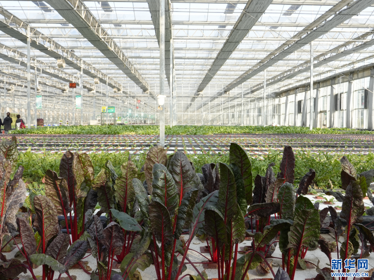 包头市土右旗敕勒川现代农业产业园智能玻璃温室内种植的蔬菜。新华网发(邓雅鑫 摄)