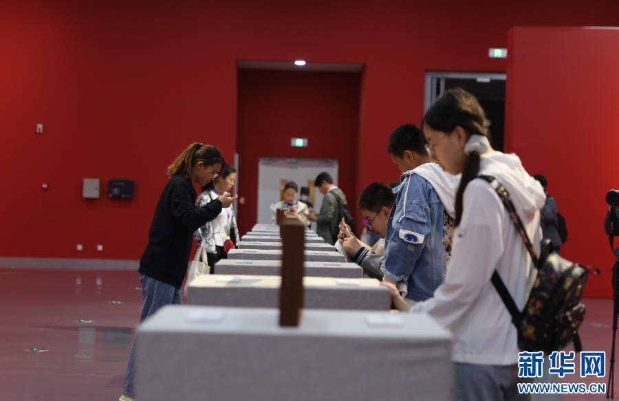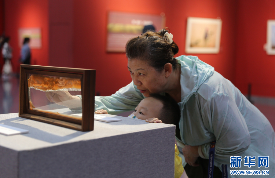 现场展出的沙漏艺术品吸引游客驻足欣赏。新华网李倩 摄