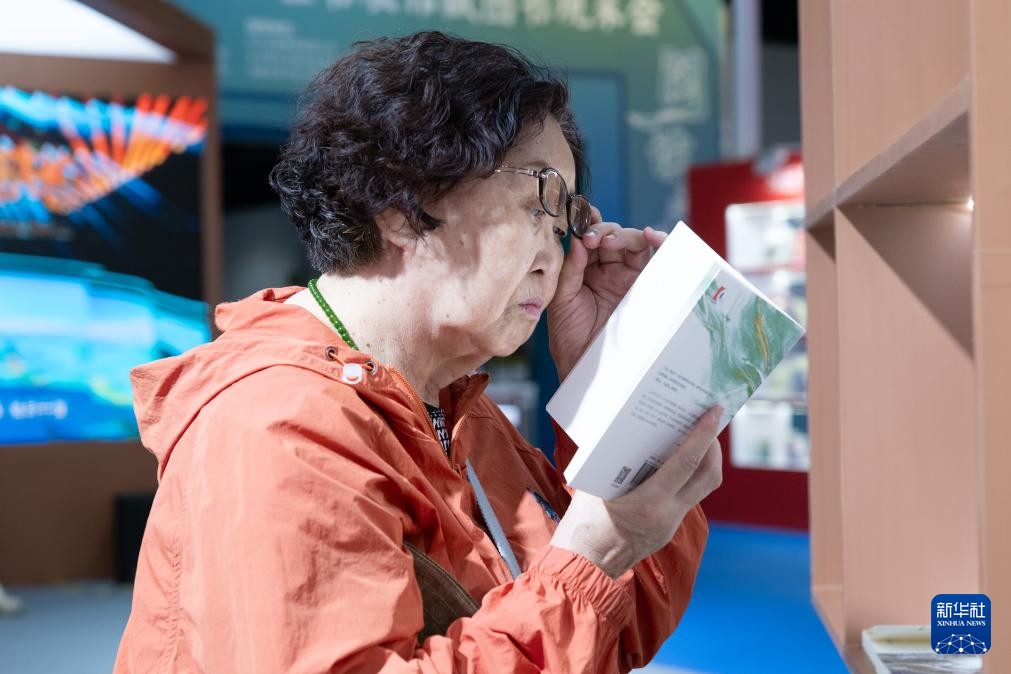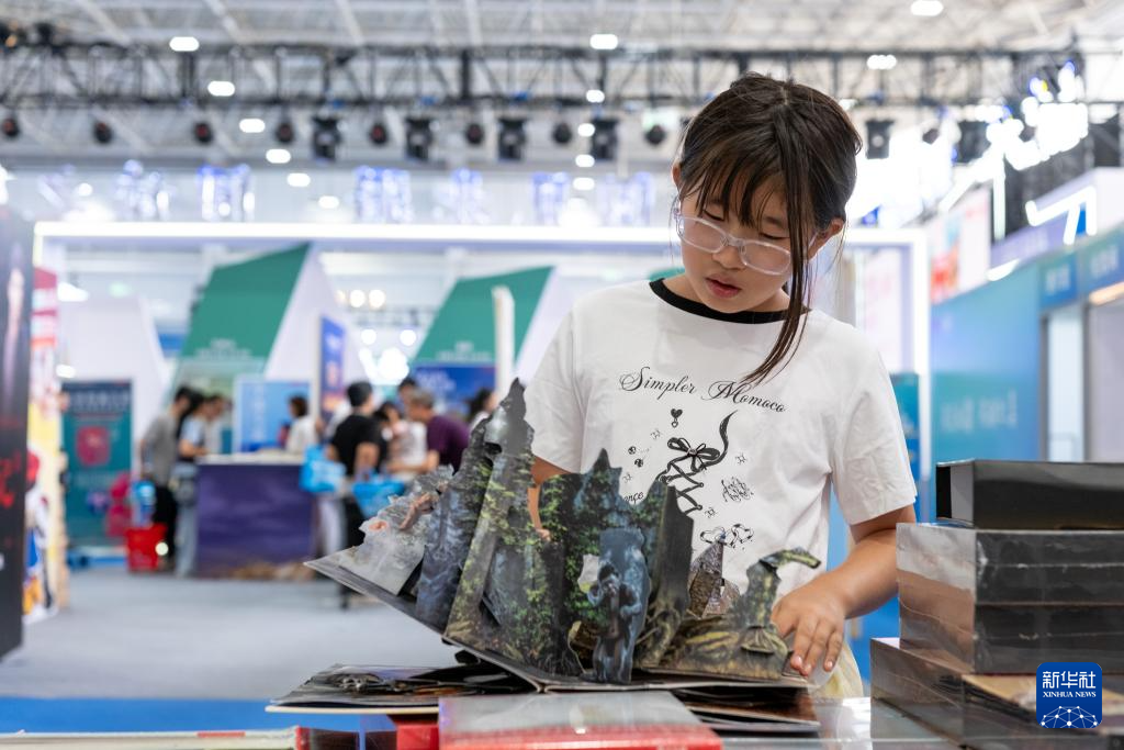 8月31日,读者在内蒙古呼和浩特市2025北疆书展阅读立体书。