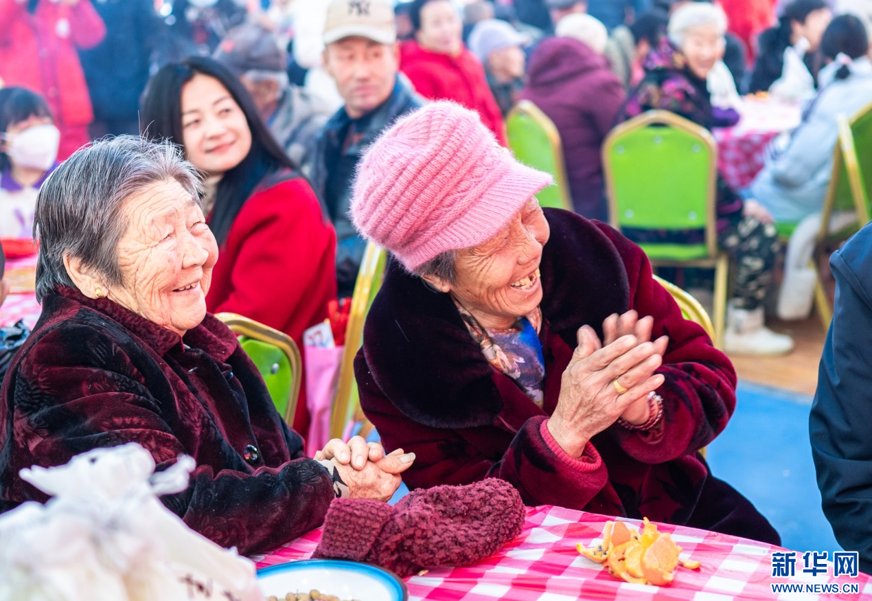 1月18日,群众在呼和浩特市玉泉区“三下乡”活动现场观看文艺演出时开怀大笑。新华网发(丁根厚 摄)