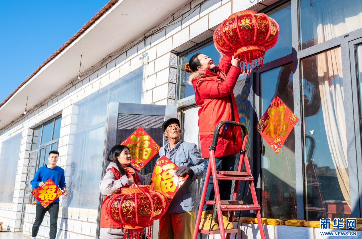 1月18日,志愿者在呼和浩特市玉泉区“三下乡”活动中入户为抗美援朝老兵赠送新春饰品。新华网发(丁根厚 摄)