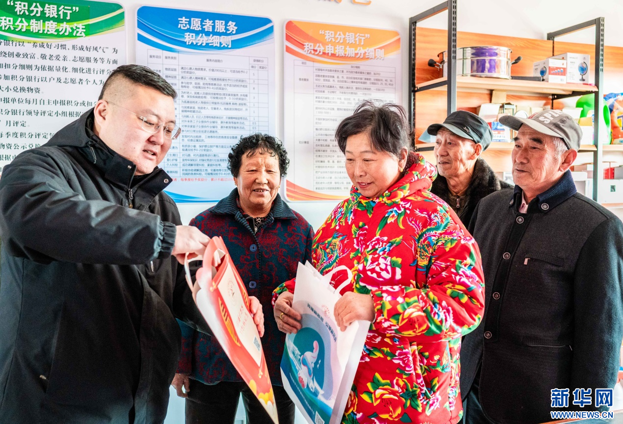 1月18日,群众在呼和浩特市玉泉区“三下乡”活动现场凭借“道德积分”兑换生活日用品及新春饰品。新华网发(丁根厚 摄)
