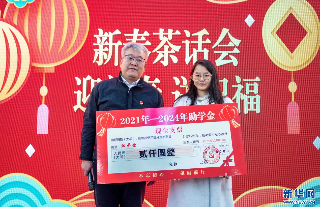 1月18日,前毛道村的大学生在呼和浩特市玉泉区“三下乡”活动现场领取助学金。新华网发(丁根厚 摄)