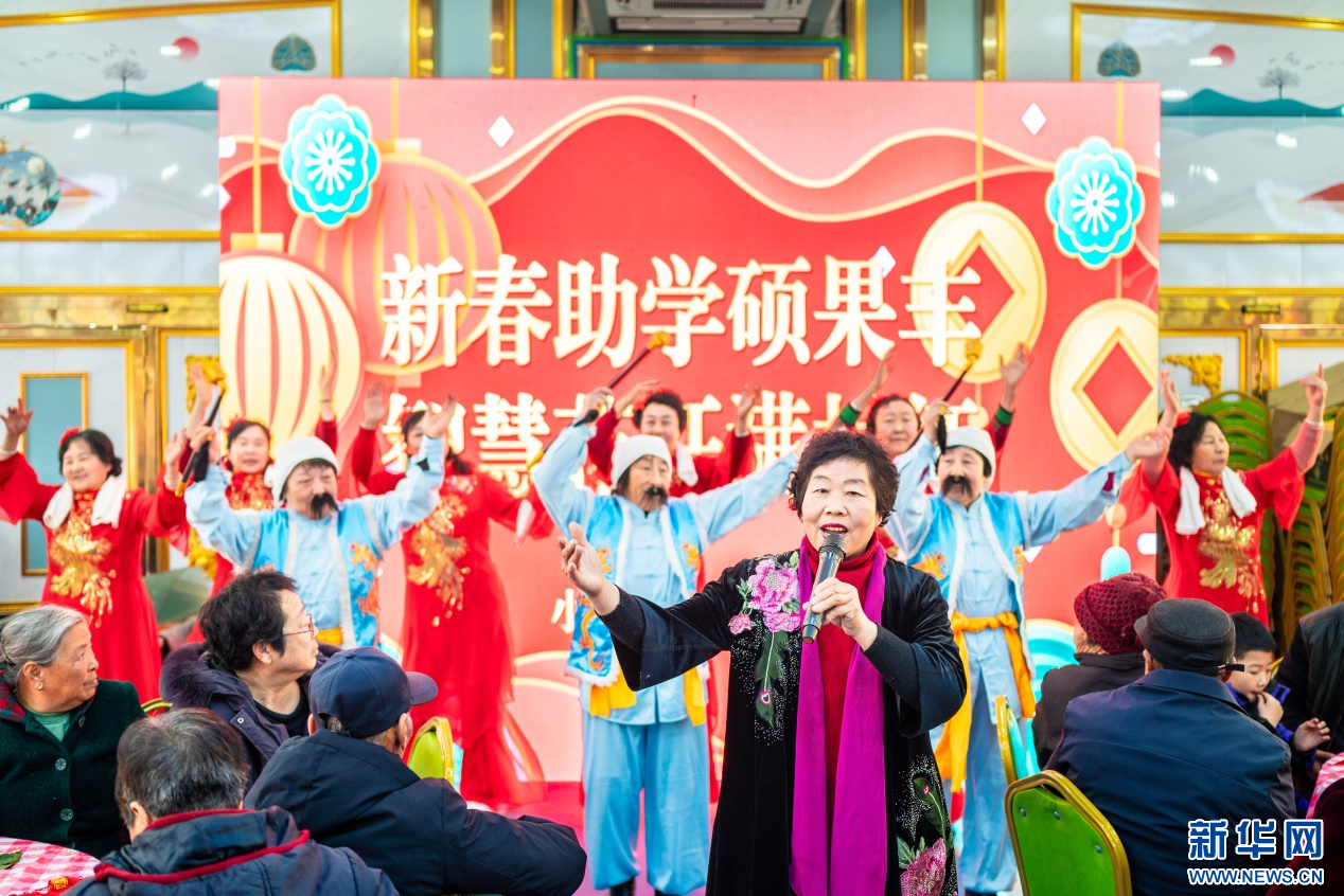 1月18日,志愿者在呼和浩特市玉泉区“三下乡”活动现场为群众表演呱嘴《十夸党的好政策》。新华网发(丁根厚 摄)
