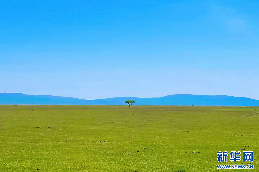 一颗树矗立在广阔的草原上。新华网发(吕可心 摄)