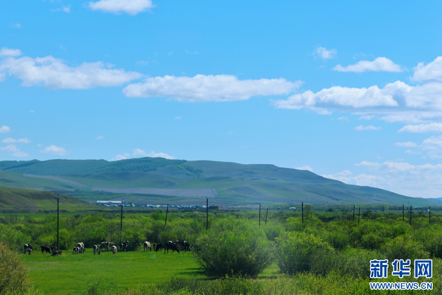 时值初夏,呼伦贝尔大草原初披绿。新华网发(李永建 摄)